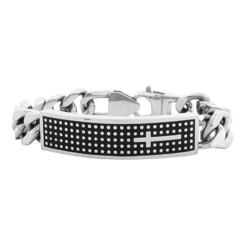 Men's Bracelet with a Large Plate In The Middle The Plate Contains a Cross and Dot Design