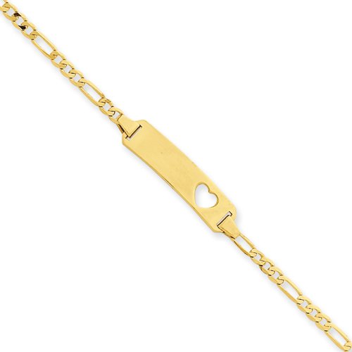 CHECK LOWEST PRICES 14k 6in Engraveable Plate with Stamped-Out Heart Figaro Link Baby/Child ID