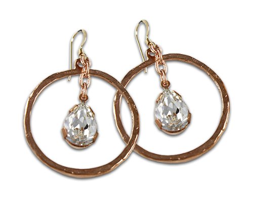 CHECK LOWEST PRICES , BEST DISCOUNT and COMPARE PARE PRICES ABOUT Designer Diana Warner Small 1 1/2" Diameter Sarah 18k Rose Gold Overlay and White Diamond Swarovski Crystal Dangle Hoop Earrings Set in Sterling and 18k Rose Gold Plate - Made in the USA - NYC